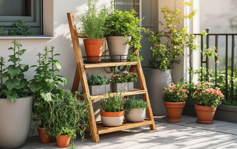 Eine Blumentreppe bringt Höhe, Licht und Ordnung.